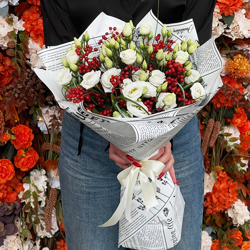 Заказанный букет вы можете забрать у нас в магазине по адресу: Москва: ул. Большая Семеновская 11с3 - с 7:00 до 24:00!