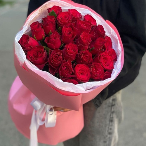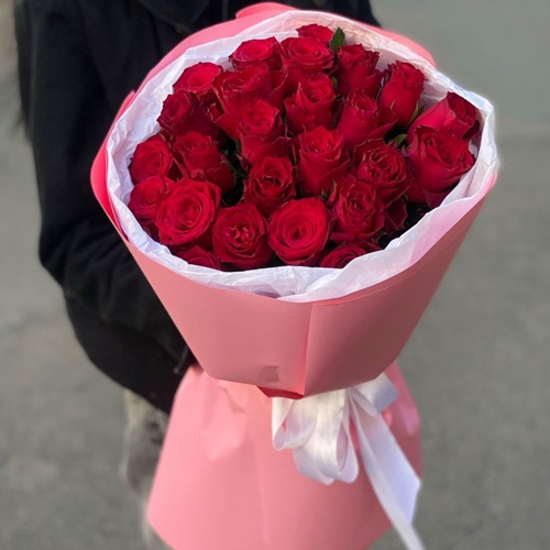 Букет "Эсса" 25 красных роз Кения (60 см)